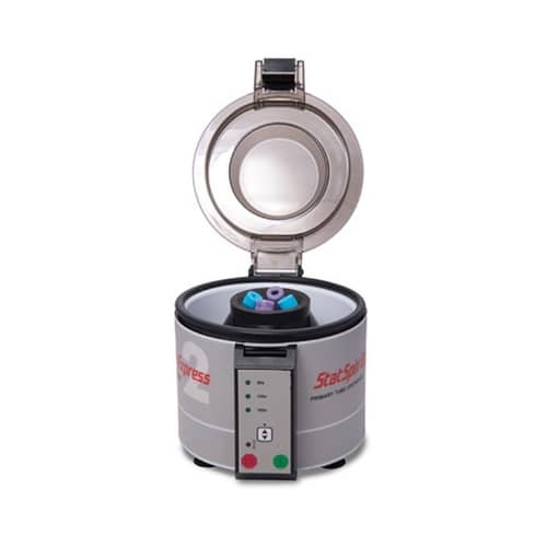 Serum or Plasma in 2 minutes equal to tubes spun for 7-10 minutes in conventional centrifuges. Small compact and quiet.The StatSpin Express 2 primary tube centrifuge prepares high-quality plasma or serum samples in only two minutes. Meet rapid test turnaround requirements without a major investment in equipment or a disruption in your laboratory routine.