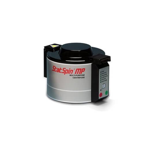 The StatSpin MP is a multi-purpose centrifuge designed to run a variety of applications. The MP can centrifuge microtubes, urines for urine sediment, Lipoclear, and hematocrit tubes with the interchangeable hematocrit rotor. All samples are done in 2 minutes or less. Rotors simply push on/pull off, no tools required.